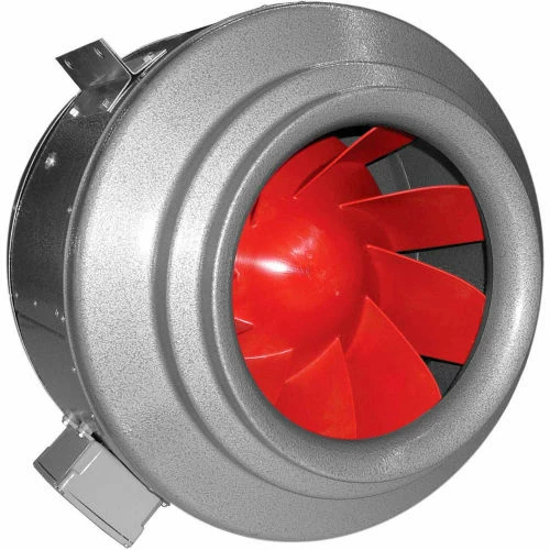 Vortex in-line duct blower fans are ideal for use in general purpose exhaust applications. Vortex V-14XL in-line duct blower fans are made from quality steel and feature a hammertone powder coat finish for added durability. The fans are built with an extended collar and lip to allow easy duct hookup. Galvanized mounting brackets allow for horizontal or vertical installation. Aerodynamic build allows free air flow. Mixed flow impellers allow generous air volume. Fans feature a permanently lubricated, maintenance-free ball bearing motor. Low 1500 RPM operating speed enables quiet operation. V-14XL fans fit ducts measuring 14″ in diameter. 6’L power cord included. ETL,CSA and UL507 listed. 3 Year Limited Warranty.