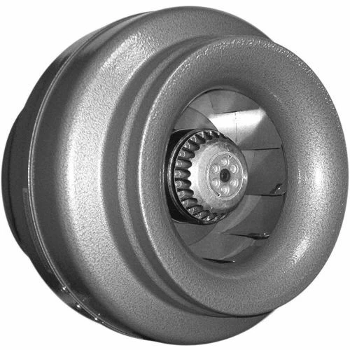 Vortex in-line duct blower fans are ideal for use in general purpose exhaust applications. Vortex VTX1000 in-line duct blower fans are made from quality steel and feature a hammertone powder coat finish for added durability. The fans are built with an extended collar and lip to allow easy duct hookup. Aerodynamic build allows free air flow. Fans feature a permanently lubricated, maintenance-free ball bearing motor for quiet, vibration-free operation. Galvanized mounting brackets allow for horizontal or vertical installation. 6’L power cord included. VTX1000 fans fit ducts measuring 10″ in diameter. Fans operate at 2750 RPM. ETL,CSA and UL507 listed. 10 Year Limited Warranty.