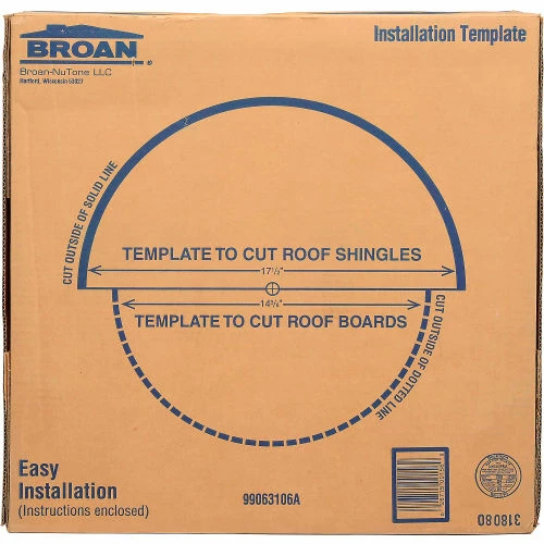 - Mounts easily between rafters template included for cutting roof boards and shingles.