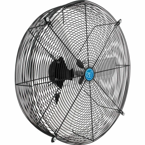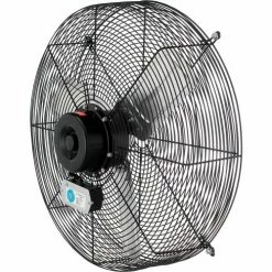The guard mounted direct drive exhaust fan is made for low-pressure exhausting and cooling applications. Three aluminum fan blades are enclosed in steel spiral wire guards for safety. This fan can be bolted directly to the wall with built-in mounting holes. This fan is single speed with an operating speed of 1100 RPM. The fan measures 24″ in diameter. It is UL, cUL listed and conforms to UL507 standard.