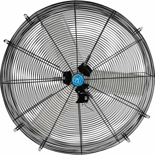 The guard mounted direct drive exhaust fan is made for low-pressure exhausting and cooling applications. Three aluminum fan blades are enclosed in steel spiral wire guards for safety. This fan can be bolted directly to the wall with built-in mounting holes. This fan is single speed with an operating speed of 1100 RPM. The fan measures 30″ in diameter. It is UL, cUL listed and conforms to UL507 standard.