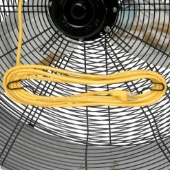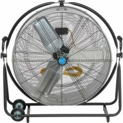 This fan made with permanently-lubricated ball bearing motor for long lasting durability and reliable performance. Gray steel housing ensures longer product life. Spiral wire safety guards protect fan blades. Fan head tilts and swings to provide multi directional air flow. The working ambient temperature range of this model is 0 – 40 degrees Celsius (32 – 104 degrees Fahrenheit). Built in power cord wrap. Adjusting screw on three sides and dual handles provide easy manoeuvrability. 2 rubber wheels on a swivel cart base. OSHA certified, UL and cUL Listed and conforms to UL507 Standard. This product has limited warranty of 1 year.