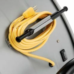 This CD industrial fan features a 2-speed PSC permanently lubricated single phase, 120V ball bearing type motor. The working ambient temperature range of this model is 0 – 40° C (32 – 104° Fahrenheit). Blower fans have a complete metal housing with spiral wire safety guards and three (3) aluminum blades. Features a yellow 12’L SJT 3-conductor cord. 2 wheel cart base permits drum to tilt 360°. It meets OSHA standards. UL and cUL Listed and conforms to UL507 Standard. This product has limited warranty of 1 year. Horsepower rating based upon maximum speed/load.