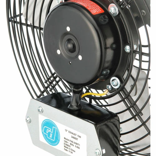 Too much humidity and heat is exhausting. Solve it quickly with the Continental Dynamics® Direct Drive 12″ Exhaust Fan With Shutter This industrial exhaust fan features a 120V, single-phase totally permanently lubricated motors with provisions for direct wiring. These shutter mounted fans install on inside wall and eliminate the need for external framing and shutter. Quiet operation makes it ideal for commercial environments. Aluminum blades are enclosed in a sturdy steel spiral wire guard. Note: Rough-in hole size is 1/2 inch (+/- 5/16) larger than fan blade size. Meets OSHA and UL507 standards. UL, cUL listed. Horsepower rating based upon maximum speed/load. 1-Year Limited Warranty.