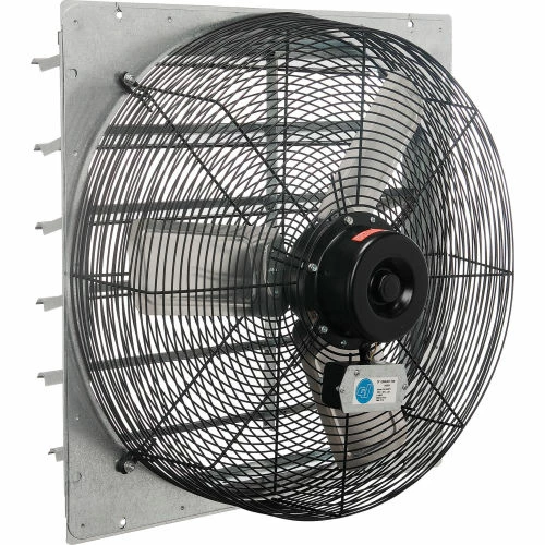 Too much humidity and heat is exhausting. Solve it quickly with the Continental Dynamics® Direct Drive 24″ Exhaust Fan With Shutter This industrial exhaust fan features a 120V, single-phase totally permanently lubricated motors with provisions for direct wiring. These shutter mounted fans install on inside wall and eliminate the need for external framing and shutter. Quiet operation makes it ideal for commercial environments. Aluminum blades are enclosed in a sturdy steel spiral wire guard. Note: Rough-in hole size is 1/2 inch (+/- 5/16) larger than fan blade size. Meets OSHA and UL507 standards. UL, cUL listed. Horsepower rating based upon maximum speed/load. 1-Year Limited Warranty.