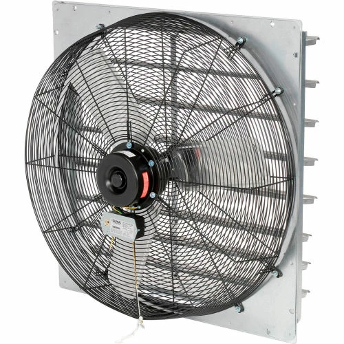 Too much humidity and heat is exhausting. Solve it quickly with the Continental Dynamics® Direct Drive 30″ Exhaust Fan With Shutter This industrial exhaust fan features a 120V, single-phase totally permanently lubricated motors with provisions for direct wiring. These shutter mounted fans install on inside wall and eliminate the need for external framing and shutter. Quiet operation makes it ideal for commercial environments. Aluminum blades are enclosed in a sturdy steel spiral wire guard. Note: Rough-in hole size is 1/2 inch (+/- 5/16) larger than fan blade size. Meets OSHA and UL507 standards. UL, cUL listed. Horsepower rating based upon maximum speed/load. 1-Year Limited Warranty.