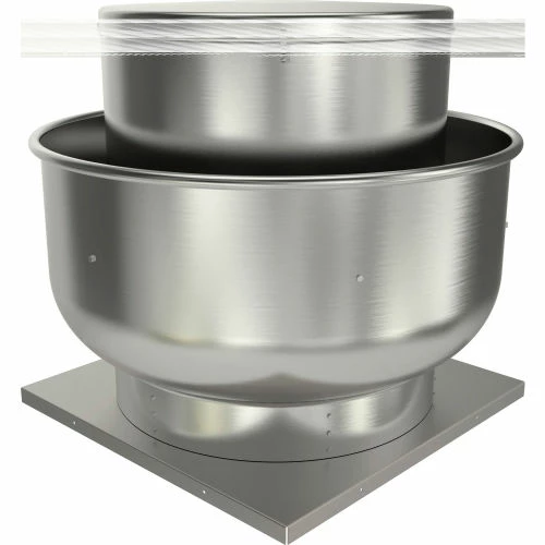 Belt-drive upblast ventilators are designed for roof mounted exhaust of commercial and industrial buildings. There models are both for roof and wall application (except 5BDU30 and 5BDU36). Durable spun aluminum construction with steel support braces. Backward inclined aluminum fan wheel. Motor and wheel are easily detachable without removing ventilator from curb. Permanently lubricated ball bearings (5BDU10 – 5BDU13) and regreasable pillow block bearings (5BDU15 – 5BDU24).