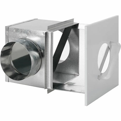 Galvanized metal lint trap for dryer boosting applications. Use when duct length between dryer and booster fan is less than 15 feet. Fits 4-inch duct. Features pull out white door with a view window with attached removable lint filter for easy cleaning and 1/2″ flange for flush mount installation. The lint trap complements all Fantech dryer booster fans.