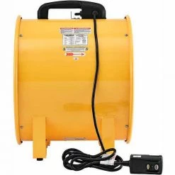 Ventilate and cool manholes, tanks and crawl spaces with the Global Industrial 12″ Portable Blower Fan. Made using durable steel housing with a yellow finish, this fan has two-speed blowers that are lightweight and portable with an easy-carry handle. Rubber feet on base help minimize noise and reduce vibrations. Ducting easily converts blower to an exhaust fan with convenient, flexible ducting. Ducts are made with 2-ply reinforced polyvinyl that is flame retardant and withstands -20° to 180°F temperatures. 120V. ETL, cETL Listed and conforms to UL507 Standard. Horsepower rating based upon maximum speed/load. 1-Year Limited Warranty.