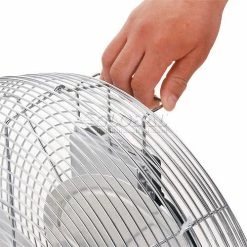 Floor fans feature a permanently lubricated 3-Speed, 120V sleeve bearing motor. Portable floor fans include 3 aluminum fan blades enclosed in chrome plated steel wire guards with a welded carry handle that acts as a cord wrap. Fan head pivots 360° for tilt angle adjustments. Includes 7’L cord. UL, cUL Listed and conforms to UL507 Standard. Horsepower rating based upon maximum speed/load. This product has limited warranty of 1 year