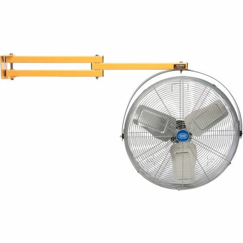Global Industrial’s 24 Inch Double Arm Loading Dock Fan provides an ideal solution for cooling and ventilating loading docks, shipping areas, warehouses, and a variety of industrial applications. The 40 Inch Steel Twin-Strut arms do not sag and extends allowing for a large range of motion to cover a large area of space. The Fan features 2 speed settings with a pull chain control and is powered by a 1/3 HP, 120V single phase motor with a 10′ long SJT conductor cord. The fan blades are constructed of Aluminum with double locking guards. Wall bracket and yoke included. UL, cUL listed, and meets OSHA and UL507 Standards. Fan comes with a 2 year limited warranty standard.