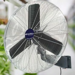 The 1/4 HP Global Industrial 24″ Oscillating Wall-Mount Fan provides refreshing air flow without taking up valuable floor space in any setting like loading docks, offices, schools, offices, and kitchens. It has an efficient 3-speed open-air over PSC-type ball bearing motor that is permanently lubricated and quiet metal fan blades that are balanced for optimum air distribution and enclosed in steel wire guards for safety with a safety-clutch oscillating mechanism that prevents jamming. A simple pushbutton gives you the option to keep the head fixed in one direction or 70° oscillating operation with the ability to tilt it for perfect air-flow placement. Pull chain on/off. Meets OSHA and UL507 standards, UL & cETL listed. Limited 1-Year Warranty.