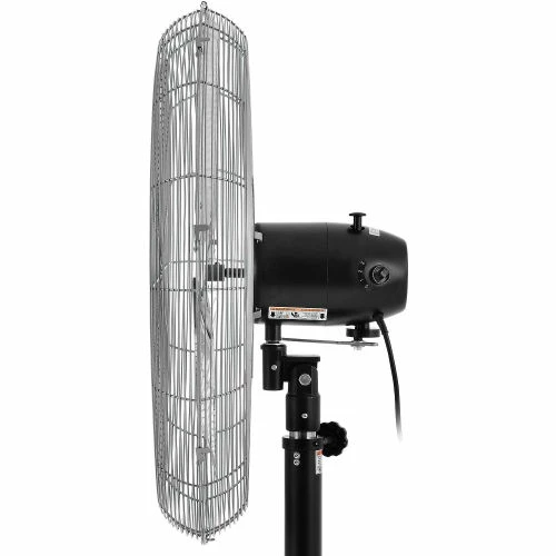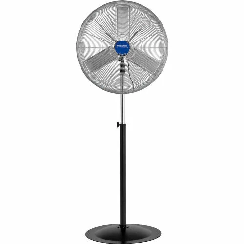 Cool off areas outside with the Global Industrial 30″ Deluxe Oscillating Pedestal Fan in Black. It features 3 aluminum blades that are precision-balanced for optimal performance, a heavy-duty pedestal base for rigid stability, and a hand screw knob that permits tool-free convenient height adjustment. The pedestal fan is powered by a rugged 3-speed 1/2 HP open-air over PSC-type ball bearing motor. The fan can be set to a fixed position to provide direct and consistent airflow or in a 80° oscillating mode for pushing out cool air in multiple directions. The elongated length of the 18’L power cord helps eliminate the need for additional extension cords. Horsepower rating based upon maximum speed/load. 1-Year Limited Warranty.