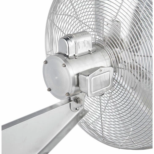 The Global Industrial series of washdown rated wall mount fans are constructed of 304 electro polished stainless steel and are rated by the USDA and NSF for use in food zones, making them ideal solutions in a multitude of applications including kitchens, hospitals, food and beverage plants, processing facilities, and much more. The washdown rating allows these fans to operate in moist, wet, humid, and corrosive environments. They are able to withstand being washed with hot water and caustic solutions without impacting performance. These fans come with a totally enclosed motor rated IP55 with a junction box for hard wiring. It is UL and cUL rated with a 5 year limited warranty standard.