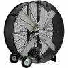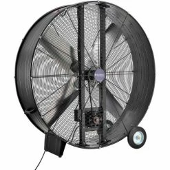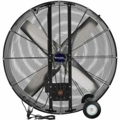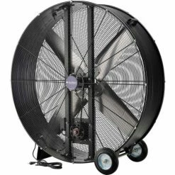 When your workspace is getting too hot to handle, roll in the Global Industrial 48″ Portable Drum Blower Fan. Use it for cooling off areas in the warehouse or beside a workbench. The sturdy steel housing of this portable floor fan has formed channels for enhanced rigidity, a grip handle for portability, and a powder coat black finish. Grills have curved grid supports. This belt driven 48″ diameter model has 4 balanced blades and rolls on 7″ solid rubber wheels. ETL, cETL Listed. Meets OSHA and UL507 Standards. Horsepower rating based upon maximum speed/load. 1-Year Limited Warranty.