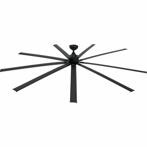 The Global Industrialâ„¢ 96″ Industrial Ceiling Fan provides effective and efficient solutions for consistent cooling and ventilating in summer months while dispersing warm air in the winter months. This fan blends functionality with a sleek and modern look, making it ideal in a wide range of applications: from factories, workshops, barns, stables, to homes and office spaces. The fan is powered by a 1/16 HP, 120V, 6-speed DC motor that generates up to 17,018 CFM with 9 aluminum blades. This industrial ceiling fan has the power to move large amounts of air in large spaces. In utilizing the DC Motor, the ceiling fan operates cooler and much quieter than a traditional AC Motor. Included with the fan are a remote control for ease of operation with 6 speeds and reverse direction, as well as mounting hardware, and a 6″ downrod. UL, cUL listed and meets OSHA standards for indoor use. For maximum airflow effectiveness, it is suggested to mount the fan at least 10′ and not more than 25′ above the ground. 1-Year Limited Warranty.