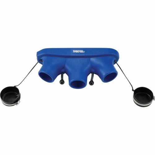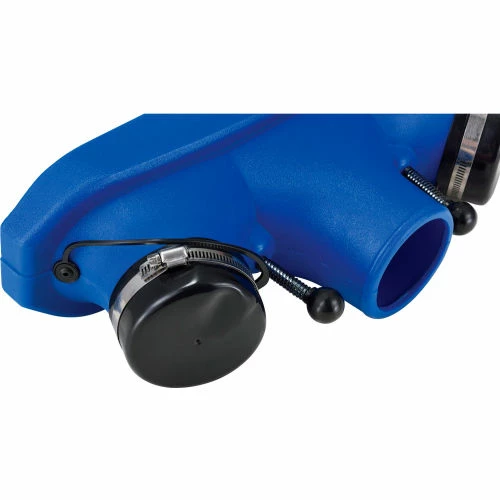 The Global Industrial Air Mover Adapter transforms the single direction of powerful airflow into three separate 3.5″ pathways when connected to the Global Industrial Floor Dryer – 641770. This adapter is made to tackle specific drying tasks that require multidirectional airflow. Simply slide in the extension to enable a wider angle of air distribution. Sealing caps are included for covering the angled tube heads. Durable lightweight plastic housing. Solid blue color finish matches the compatible Global Industrial Air Mover for a complete and clean look when connected. 1 Year Limited Warranty.