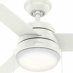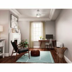 The Scandinavian style lighting complemented by a mid-century color palette along with the rounded edges throughout the Aker gives it a soft modern look. With a 36-inch blade span, this petite fan is perfect for small spaces like home offices, hallways and even bathrooms. But don’t let its size fool you: This modern ceiling fan packs a punch when it comes to airflow and keeping you cool.