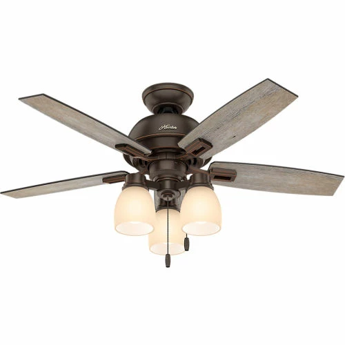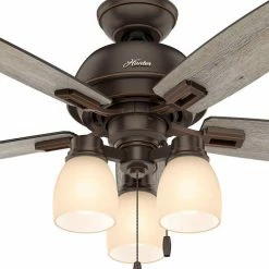 The Donegan boasts a sophisticated design with casual appeal. As part of the Hunter Designer Series, this fan showcases high-end finishes and rustic features with a subtle nod to Western style. The powerful motor and 44-inch blades will keep the air moving in small rooms, and the dimmable LED bulbs in the three-light fixture are fully adjustable to always meet your needs. Don’t forget to check out the full Donegan collection to see the huge variety of choices – including finishes, sizes, lighting options, and more – and you’ll be able to carry a consistent design theme throughout every room.