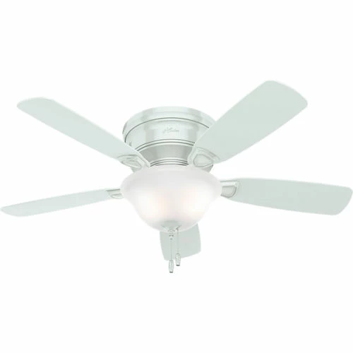 The Low Profile traditional ceiling fan is designed with textured white finish and smaller rooms in mind. This indoor ceiling fan’s low profile housing is specially crafted to fit flush to the ceiling and is ideal for use in rooms with low ceilings. The Low Profile ceiling fan features WhisperWind® motor technology to deliver powerful and quiet operation.