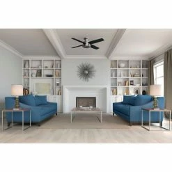 A contemporary fan with mass appeal, the Dempsey fits flawlessly in today’s modern home. The beautiful, clean finish options work together with the high contrast of angles throughout the design to create a look that will keep your space looking current and inspired. The 52-inch blade span will keep large rooms cool while the low-profile housing maintains a discreet appearance. We have a full collection of Dempsey fans, which means you can keep a consistent look while tailoring the size and features to each room in your house.