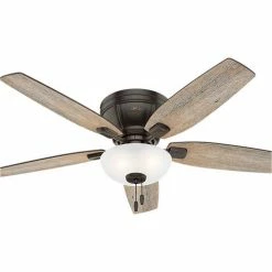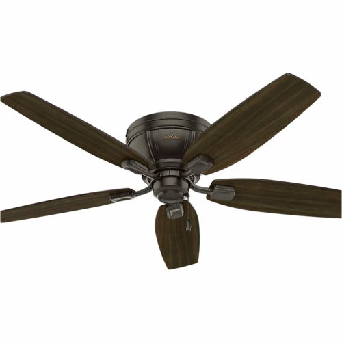 Looking for a ceiling fan that fits closer to the ceiling? The Kenbridge features a unique, more compact light fixture that takes up less space in your room while providing ample light with three 9W dimmable LED bulbs. This rustic ceiling fan fits perfectly in large rooms and features a flush mount to fit seamlessly on lower ceilings. The Kenbridge includes reversible blades to customize your ceiling fan’s look and pull chains to change the fan’s three speeds and light output.