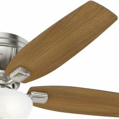 Looking for a ceiling fan that fits closer to the ceiling? The Kenbridge features a unique, more compact light fixture that takes up less space in your room while providing ample light with three 9W dimmable LED bulbs. This rustic ceiling fan fits perfectly in large rooms and features a flush mount to fit seamlessly on lower ceilings. The Kenbridge includes reversible blades to customize your ceiling fan’s look and pull chains to change the fan’s three speeds and light output.