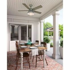 Industrial and rustic design come together on the Mill Valley with details including vintage style rivets securing the blades, coin-edge thumb screws and a barn style open hood light. Style meets performance with the Mill Valley’s white hood reflector that maximizes light from a vintage style LED Edison bulb. Damp rated and offered in a slate finish, the Mill Valley completes the look of casual farmhouse living spaces or patios. The Mill Valley Collection is available in a variety of finishes and mounting options to customize the look of your room while maintaining a consistent style throughout your home.