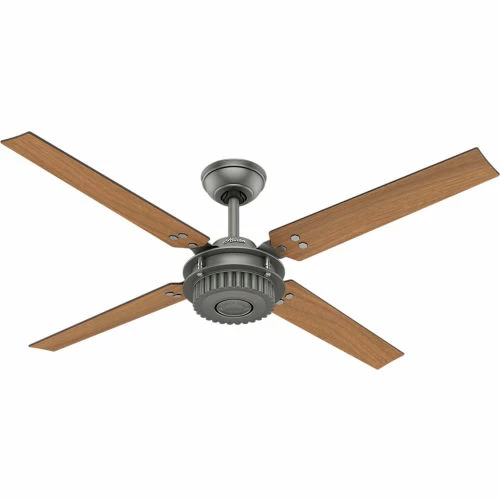 Borrowing design elements from industrial machinery, the Chronicle is manufactured to bring superior air movement to your home. The rivets and exposed hardware will fit right in with any modern or industrial décor. This fan is damp-rated for covered porches or moist environments, and the 54-inch blades move plenty of air for large rooms.