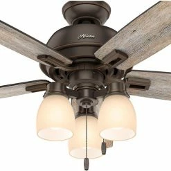 The Donegan boasts a sophisticated design with casual appeal. As part of the Hunger Designer Series, this fan showcases high-end finishes and rustic features with a subtle nod to Western style. The powerful motor and 52-inch blades will keep the air moving in large rooms, and the dimmable LED bulbs in the 3-light fixture are fully adjustable to always meet your needs. Don’t forget to check out the full Donegan collection to see the huge variety of choices – including finishes, sizes, lighting options, and more – and you’ll be able to carry a consistent design theme throughout every room.