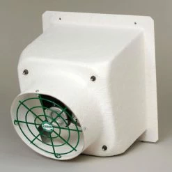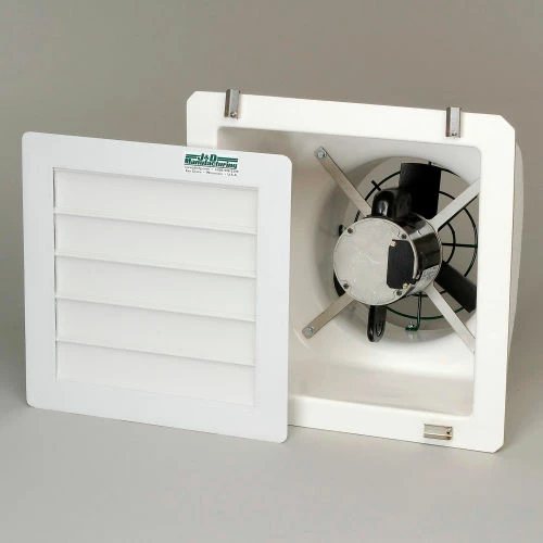 Corrosion resistant fiberglass housing has smooth shape with gel coat inside for easy maintenance and maximum airflow. Single-phase totally enclosed motor has sealed ball bearings and automatic thermal overload protection. Slant wall housing provides efficient airflow. Features include poly shutters, variable speed and 3 poly fan blades. 115V/230V. UL listed. 2 Year Limited Warranty. Horsepower rating based upon maximum speed/load.