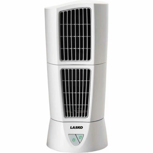 The Lasko 4917 Desktop Wind Tower Fan, in white, is a space-saving desktop fan that has a slim 6-inch diameter. The top module oscillates 45 degrees or can be locked in a fixed position. For precision air delivery pivot and lock the top module so this unit can move the air in two different stationary positions at once. For even greater coverage and versatile air circulation, combine the pivot with oscillation. It is ideal for tabletops, desktops, workshops, health clubs, stores, classrooms, offices, hospitals and other areas where there is limited space. Features include three speeds, front-mounted electronic controls, integrated carry handle and a 120-volt permanently lubricated motor. Its unique look, amazing performance and portability is perfect anywhere you want to keep cool.