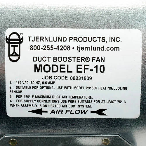 Tjernlund EF-10 Duct Booster Fan – 475 CFM