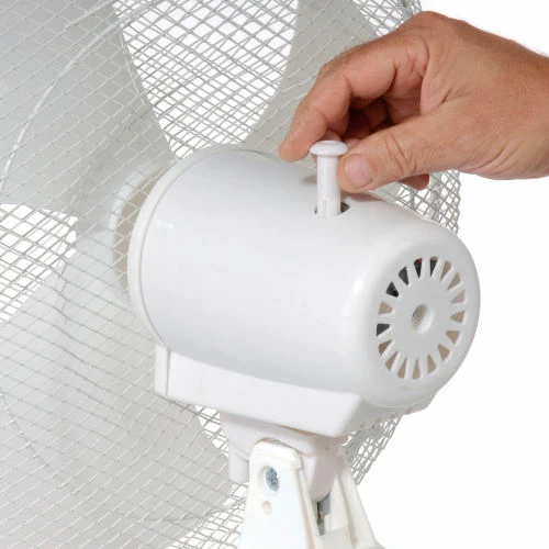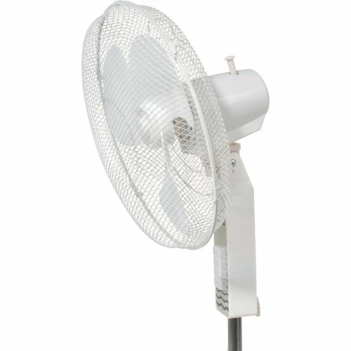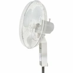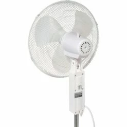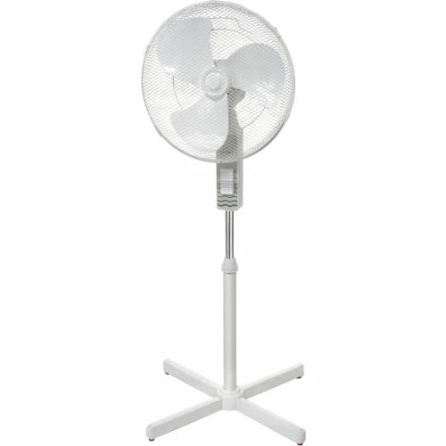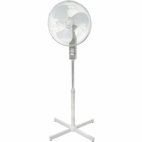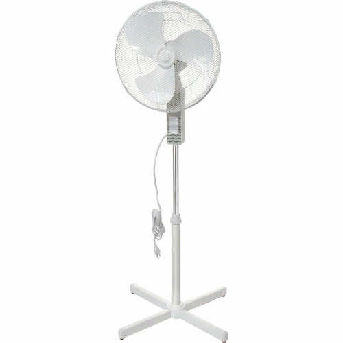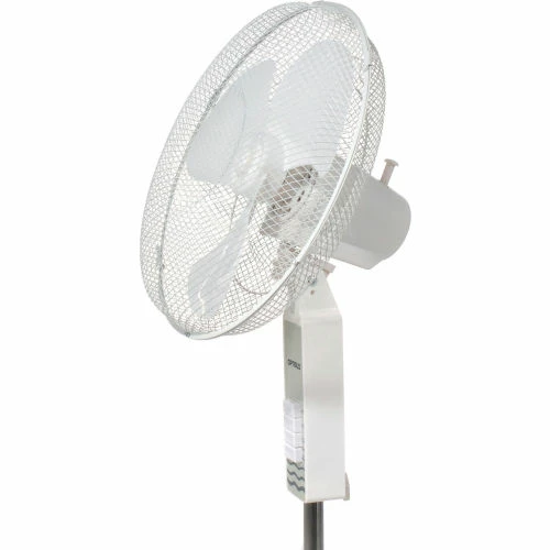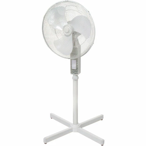 Great for homes and offices These office fans offer 3-speed fan control and oscillation with push button controls. Stand Floor Fan offers a 4-blade pedestal base and height adjustable fan head up to 40?” H. Made with white plastic housing. 3 plastic fan blades are enclosed in white powder coated wire mesh guards. Pivot-action fan head allows tilt adjustments. Includes 3-conductor SPT power cord. Meets OSHA standards. UL Listed ,cETL Listed. 1 Year Limited Warranty.