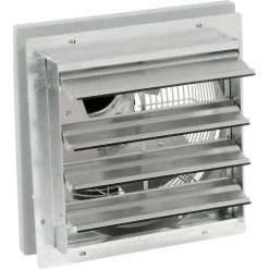 Features gravity close louvers to direct airflow. Made with aluminum louvers and steel frame. Weather stripping provides tighter seal.