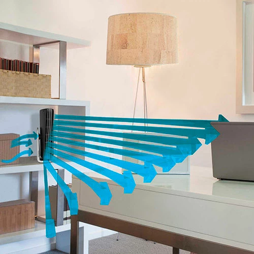 The Vornado® Duo Small Room tower circulator offers a more effective way to circulate air with V-Flow circulation. Uniquely contoured air outlets create a wide span of constant airflow, without the need for oscillation. With V-Flow circulation, a high volume of air is continuously moving throughout the room, creating quiet, comfortable circulation. Easily adjust the airflow direction in either the tower or low-profile position for even more versatility. The Duo’s innovative one button design allows for simple selection of the circulator’s 4 fan speeds. Backed by Vornado®’s 5-year limited warranty.