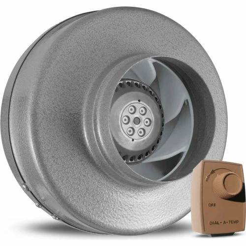 Manufactured in Canada, the Vortex Powerfans In-Line Duct Blowers are ideal for use in general purpose exhaust and duct boosting applications. The variable speed control fan kit includes a Vortex Powerfan 255 CFM VTX500 and a Dial-A-Temp speed control. This kit also comes with galvanized mounting brackets allowing either horizontal or vertical installation.