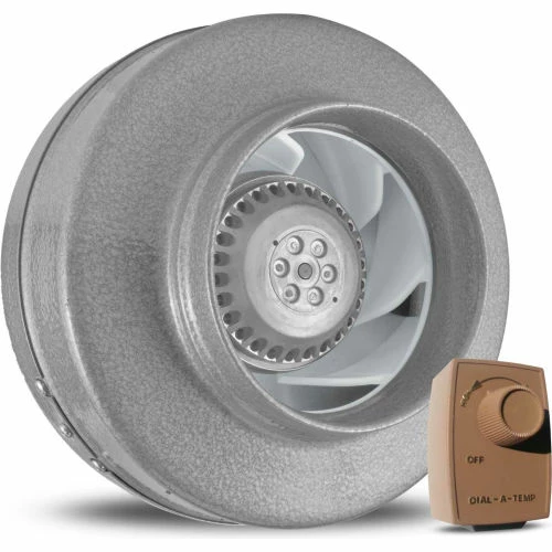 Manufactured in Canada, the Vortex Powerfans In-Line Duct Blowers are ideal for use in general purpose exhaust and duct boosting applications. The variable speed control fan kit includes a Vortex Powerfan 293 CFM VTX600L and a Dial-A-Temp speed control. This kit also comes with galvanized mounting brackets allowing either horizontal or vertical installation.